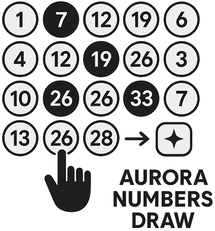 A participant chooses 7, 12, 19, 26 and 33. The random draw reveals 4, 12, 19, 28 and 33, plus a bonus number of 7. This means three main numbers match and the bonus number also matches. The specific prize, if any, depends entirely on the official rules of the real game.